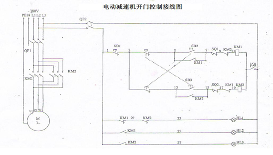 將主控箱輸出的常開干接點K4串入電動減速機(jī)電路,如下圖: